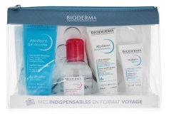 Mes Indispensables Format VoyageCe produit est une trousse composée de 4 produits pour le corps et le visage. Deux sont des hygiènes dermatologiques : un gel douche et une eau micellaire.