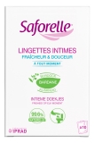 Saforelle Lingettes Intimes 10 Lingettes sont des lingettes qui, grâce à leur formule sans savon et enrichies en Bardane, nettoient en douceur et rafraichissent la zone intime à tout moment de la journée.